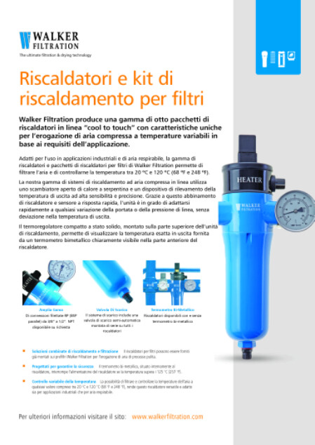 Walker Filtration produce una gamma di otto pacchetti di riscaldatori in linea “cool to touch” con caratteristiche uniche per l’erogazione di aria compressa a temperature variabili in base ai requisiti dell’applicazione.